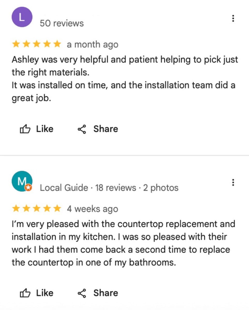 In The First National Ranking of Stone Countertop Fabricators and Installers in the U.S., we evaluate companies not only by the quality of materials and workmanship but also by how open they are to communication. Attentive handling of reviews is not a formality — it is part of customer service that determines the future of a business.
