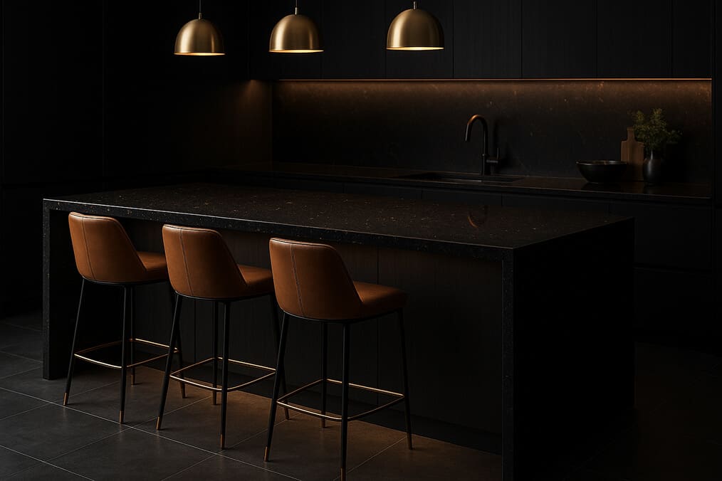 Dark engineered quartz stone countertops can fade over time with prolonged sun exposure. If your kitchen faces south, go with lighter tones or use UV-protective shades.