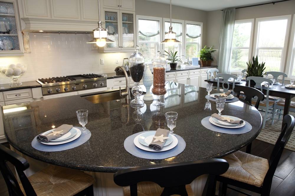 If your kitchen includes an island, use it as a design accent: choose black granite for the island and a lighter tone along the wall.