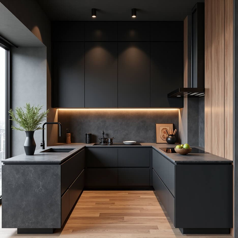 Concrete, wood, or dark graphite tones — a great choice for those looking for something beyond classic white. These finishes look especially striking in industrial and Scandinavian-style interiors.