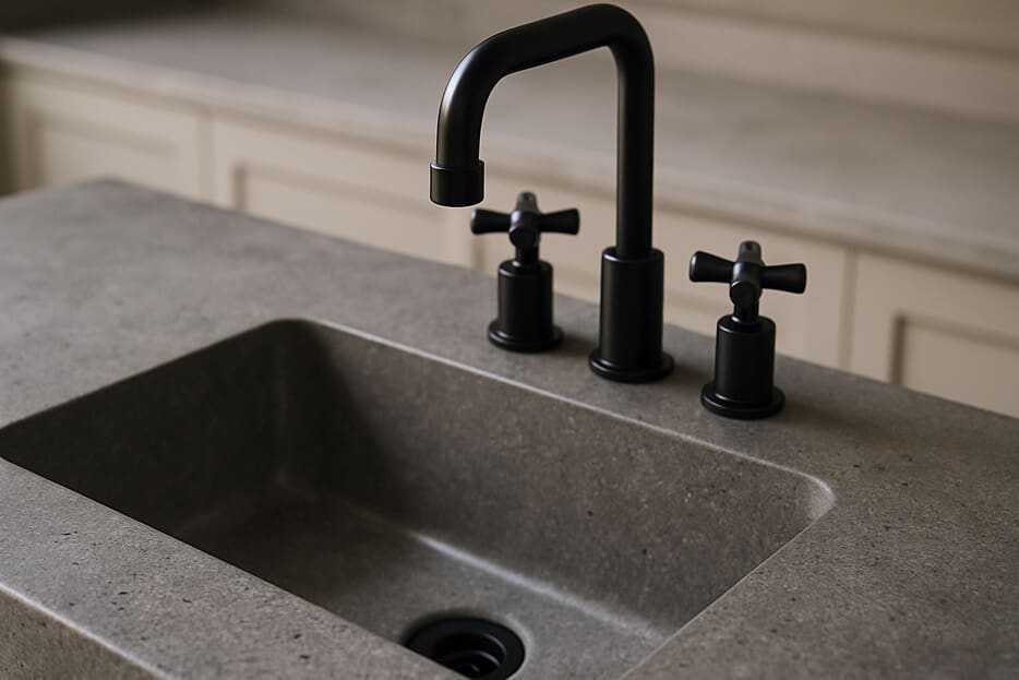 - Precast countertops — concrete is poured into molds off-site, then the countertop is delivered and installed in place.