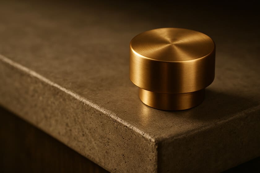 Concrete + brass or copper — especially in the details: handles, light fixtures, faucets.