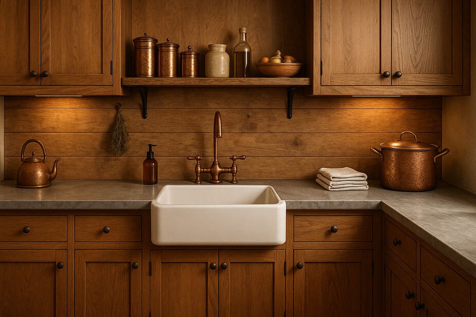 Farmhouse or rustic kitchens — especially when combined with wood and warm accents.