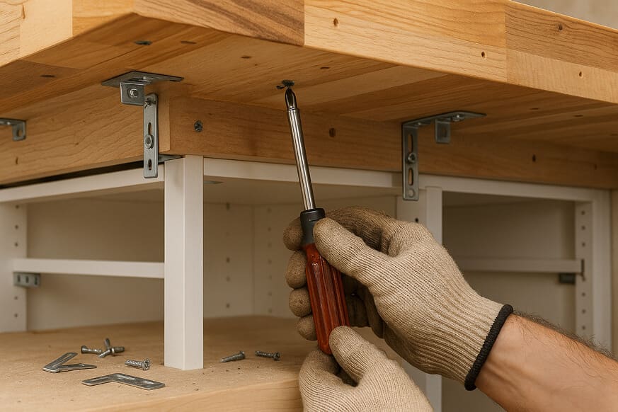 If you're installing a butcher block island (how to install butcher block island), attach it from underneath using sliding brackets—like Z-clips or elongated screw holes. Never screw it down tight: the wood must be able to expand. And don’t forget to treat the underside and all edges.