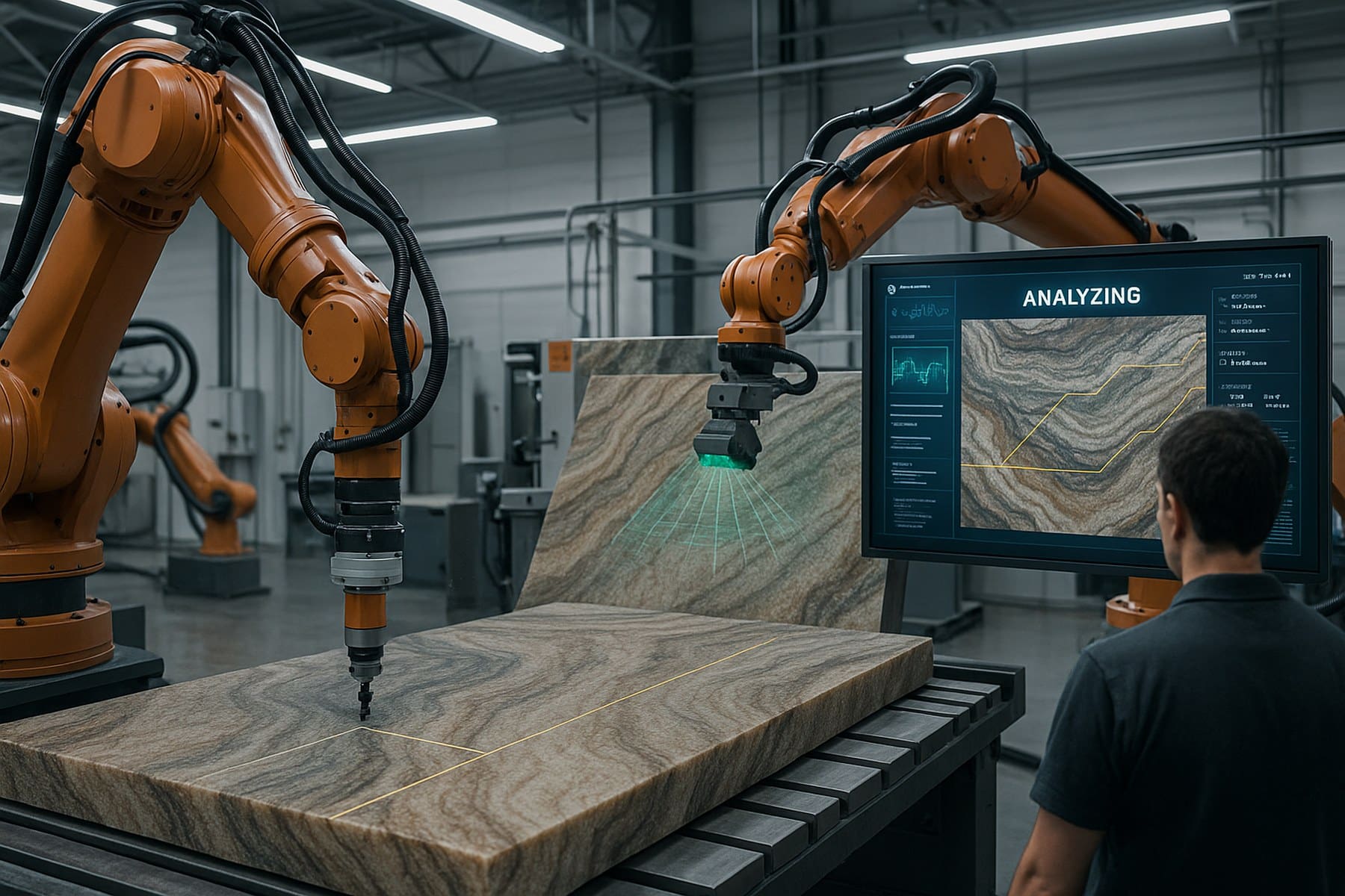 Artificial intelligence is being integrated into stone fabrication processes, significantly increasing precision and productivity. Modern AI-powered systems optimize slab cutting based on the stone’s natural structure, minimizing waste and improving the final appearance of the products.