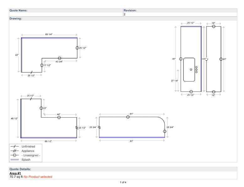 Example of a message we sent out to contractorsExample of a countertop project, with the specified data for cost calculation